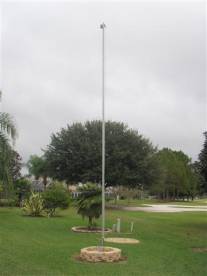 This embodiment of the Inverted “L” is not robust. Florida is a warm windy place and this antenna has held up well. When high winds are predicted the antenna wire is withdrawn to the “stowed position” where 40 feet of the flattop is side-by-side with the Flagpole, while a total of 7.5’ of flattop is still horizontal. If we had an ice loading condition here in Florida this builder would beef things up.