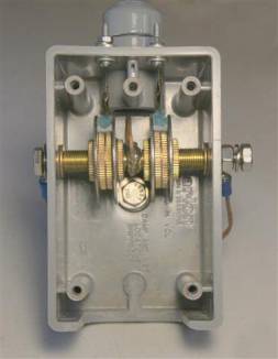 RF contact between the wire and the mast is accomplished using a homebrew mast pulleys box.