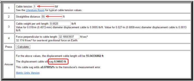 If your interest is the 55’ version, locate the red horizontal line at the 55’ mark on the left scale and read down from there.