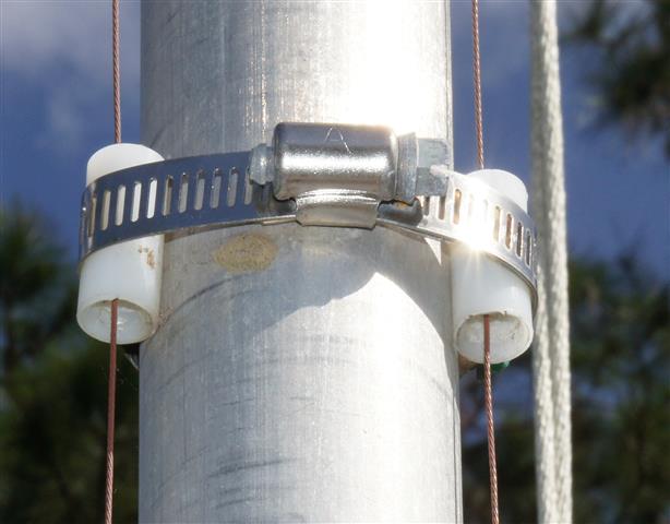 Each bushing was reamed out with a 45 degree chamfer and the 3 pairs were attached to the Flagpole using stainless steel hose clamps.